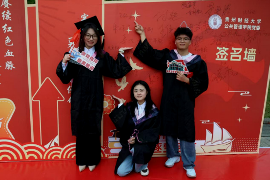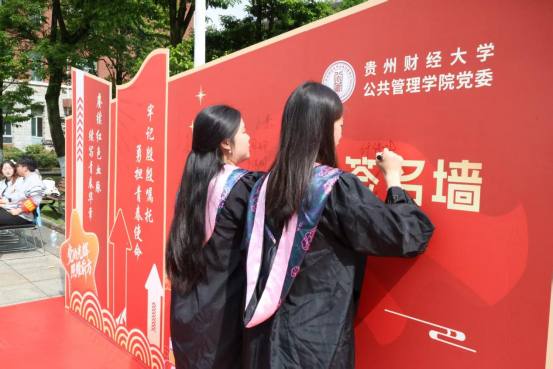 活动现场,一面印有“赓续红色血脉,续写青春华章”主题标语的红色签名墙成为最耀眼的打卡点。毕业生党员们身着学士服,郑重地在墙上签下自己的名字,与相伴四年的师长同窗合影留念,快门声中定格下一个个意气风发的瞬间。签名墙上,笔迹或刚劲或清秀,却都饱含着对校园时光的深深眷恋与对未来的无限憧憬。