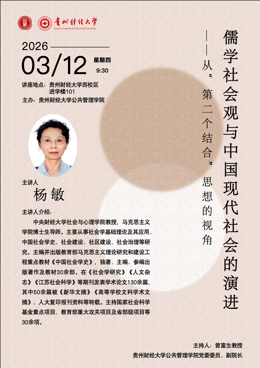 中央财经大学杨敏教授讲座——儒学社会观与中国现代社会的演进——从”第二个结合“思想的视角