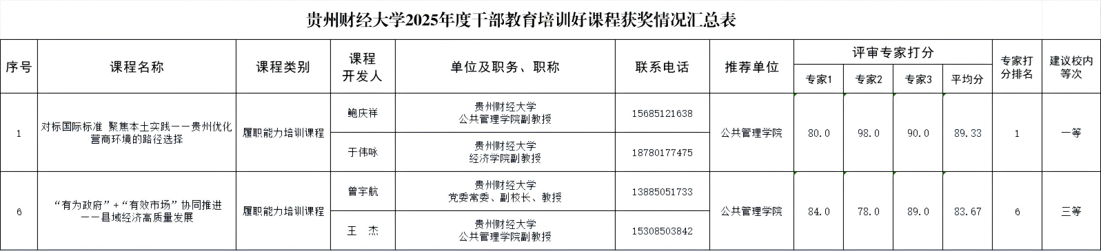 其中,由鲍庆祥、于伟咏老师联合开发的课程《对标国际标准聚焦本土实践——贵州优化营商环境的路径选择》荣获一等奖;由曾宇航、王杰老师联合开发的课程《“有为政府”+“有效市场”协同推进——县域经济高质量发展》荣获三等奖。